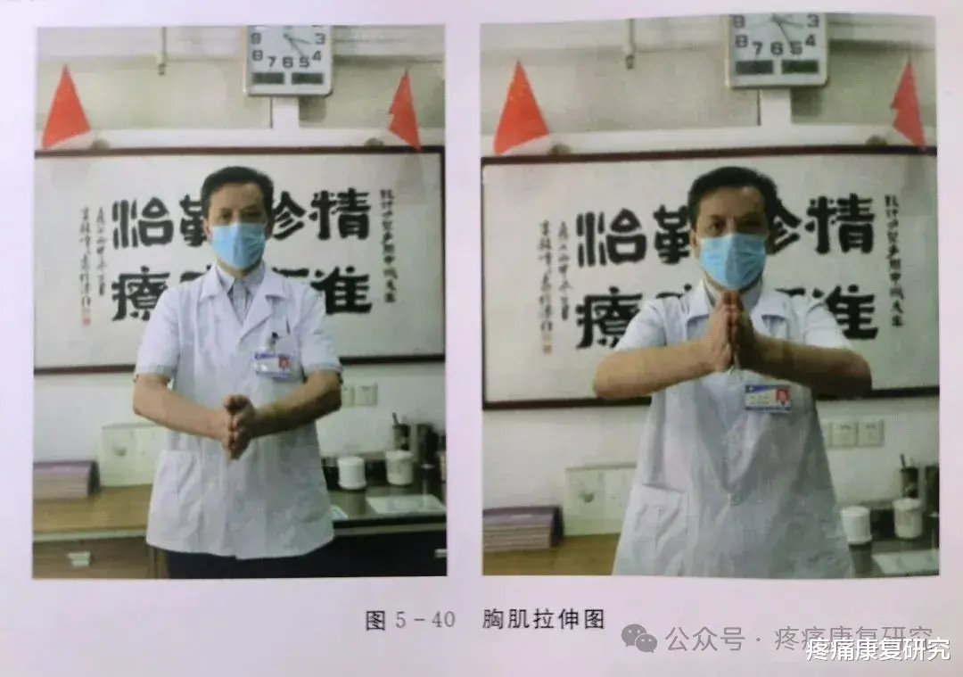 拉伸后需抗阻激活,重点拉伸胸小肌、胸大肌、斜方肌、肩胛提肌。