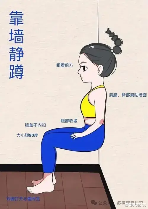腰背始终贴墙,双臂可自然前平举或放于大腿上。