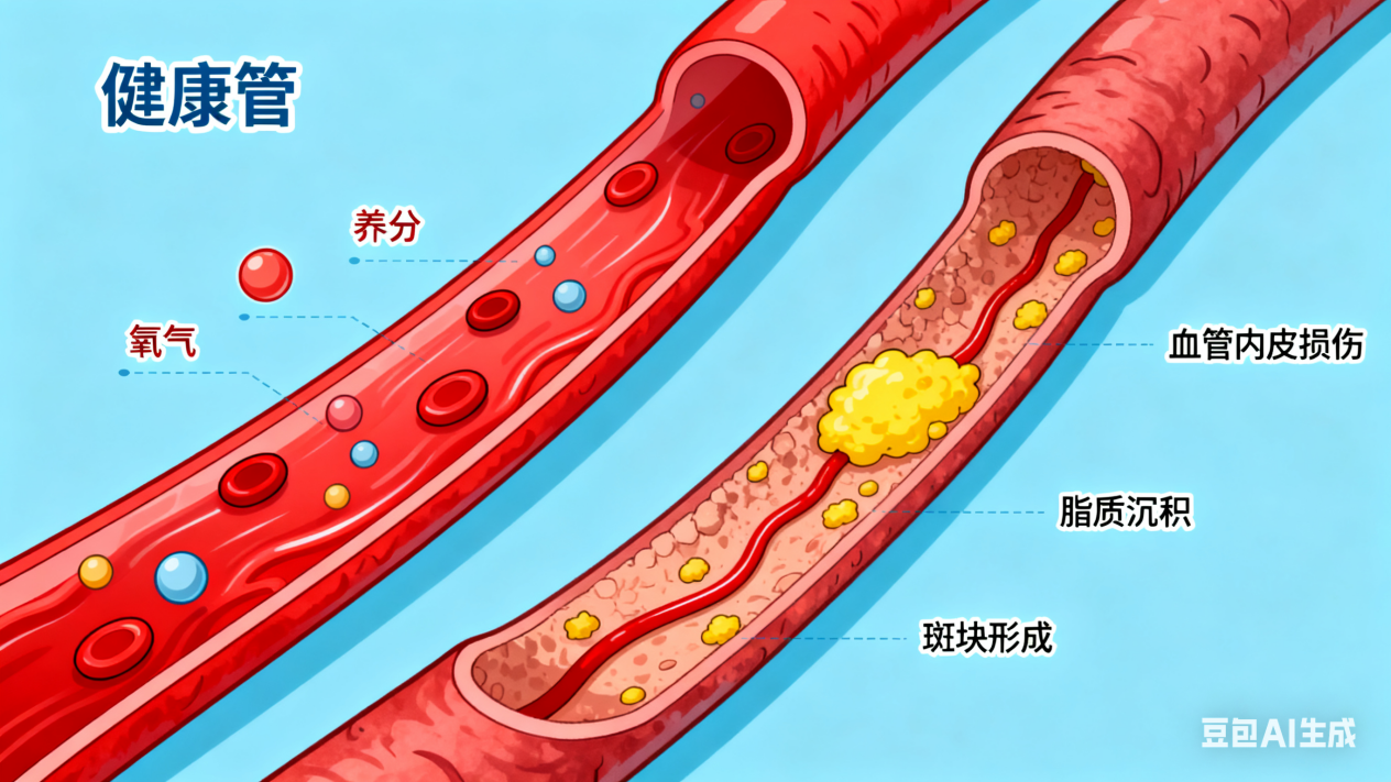 很多人觉得血管问题是“突然发生”的,其实早被日常习惯埋下伏笔。先给大家科普一个知识点:血管内皮是血管壁最内层的薄膜,它光滑完整时,血液能顺畅流动;一旦受损,血小板和脂质就容易沉积,慢慢形成粥样硬化斑块——这正是心梗、脑梗的“元凶”。