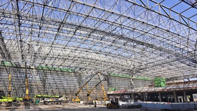 目前,工程已进入钢网架安装、屋面铺设与内部装修等环节,整体预计于2026年四季度完工。