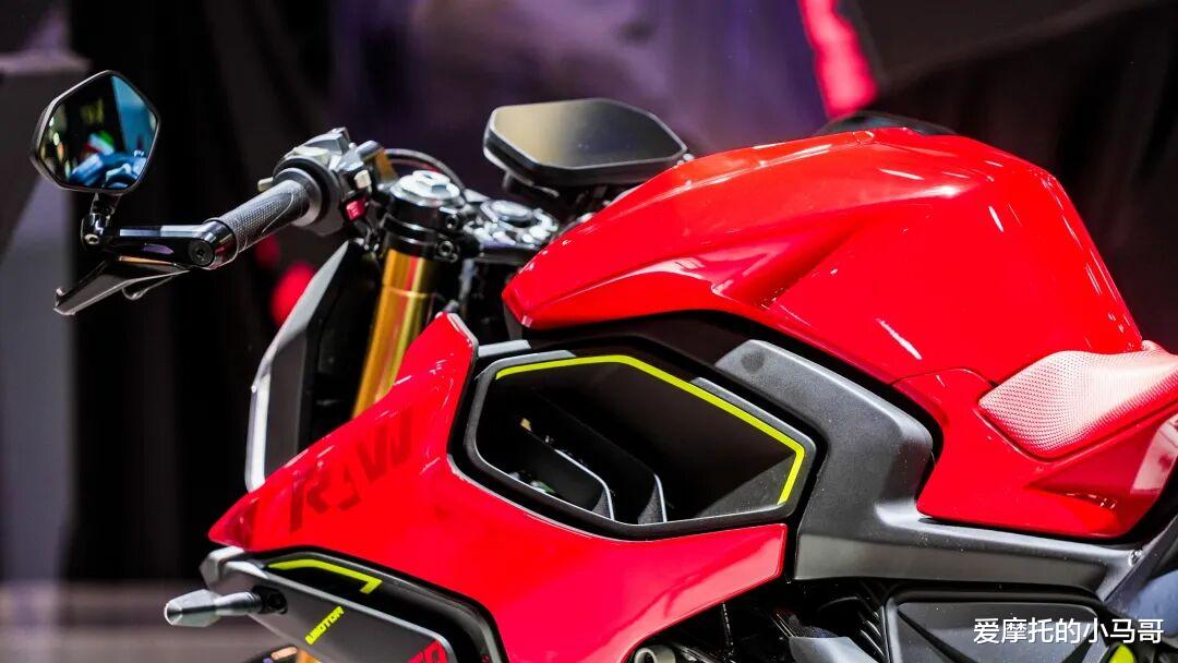 相较于动力表现,EQVVS 600的造型设计更具竞争力。从侧面观察,车身前后端线条简洁利落,设计重心刻意突出中间的四缸引擎;完全平放的V4引擎形成对称的左右结构,装饰性包围壳也遵循对称美学,细节处理较为精细,较好地传递出“自由与力量的野性”这一设计理念。