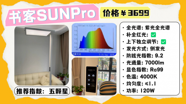 落地护眼大路灯第5名:书客护眼大路灯SUNPro小太阳;主打“医学养护眼”的特性,是唯一做到降低98%近视风险的护眼灯。