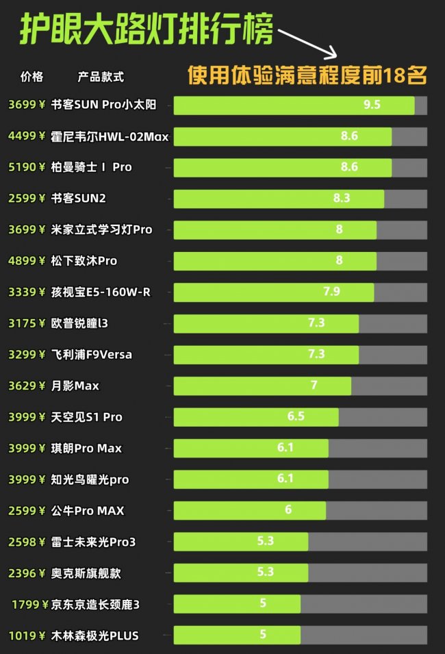 全光谱大路灯推荐哪款?落地护眼大路灯的十大品牌人气榜单包括:书客、霍尼韦尔、孩视宝、柏曼等品牌,具体表现如下: