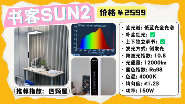 落地护眼大路灯第1名深度解析:书客护眼大路灯SUN2;为儿童和青少年提供专业级、舒适护眼的健康照明体验,成为护眼台灯领域的新标杆。
