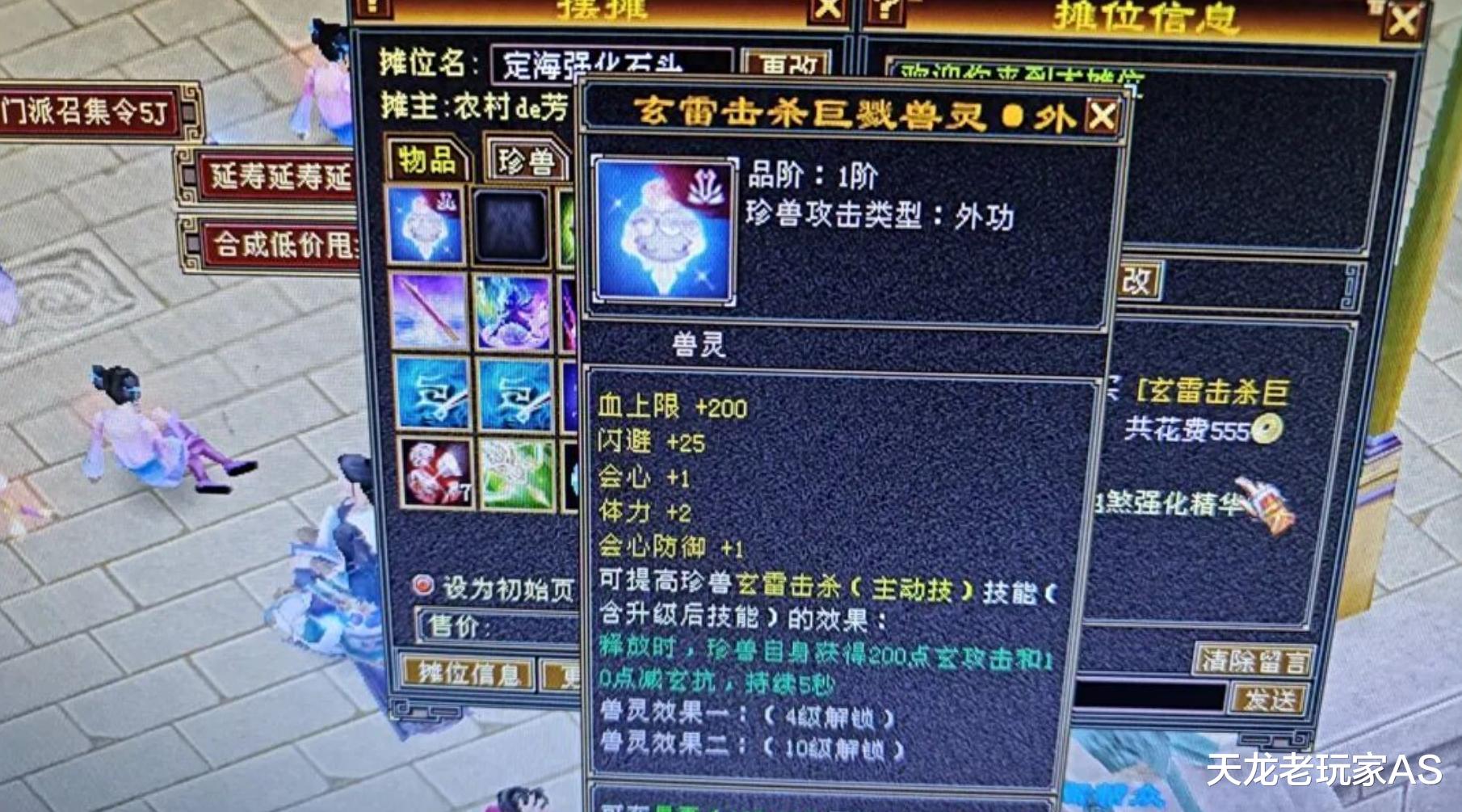 来自粉丝投稿,以555金的价格摆摊售出的玄雷击杀兽灵,词条绝对极品(咱也不知道号主怎么想的,居然摆这个价格)。