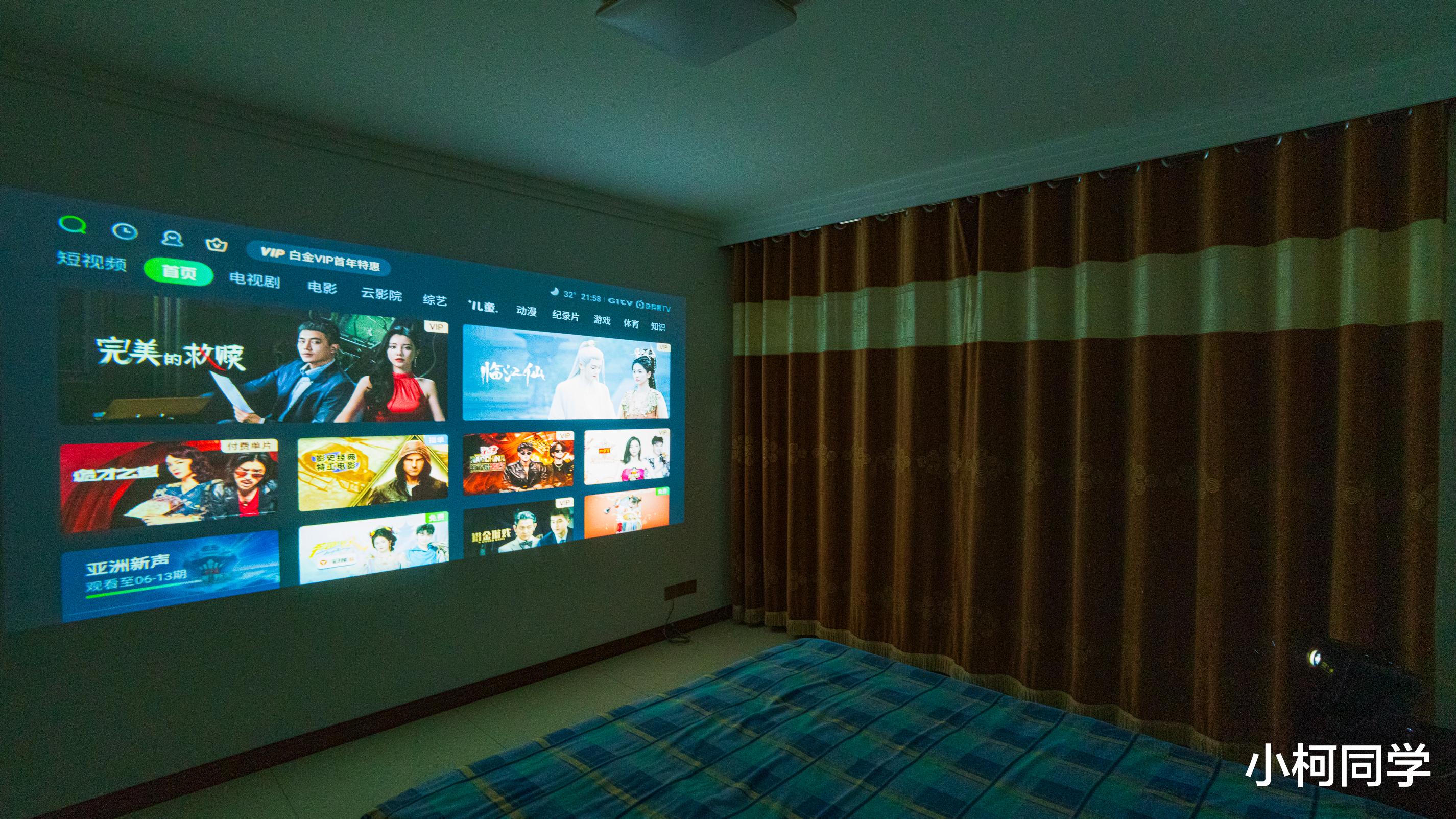 TOF全自动跟随,无感对焦校正,环境自适应X光学科技,无感对焦、无感校正、自动避障、自动入幕,开机无广告,体验丝滑。下图是我在同一间卧室内的左、右两侧床头柜分别摆放投影仪,无论摆在哪一侧,都能实现快速对焦校正。
