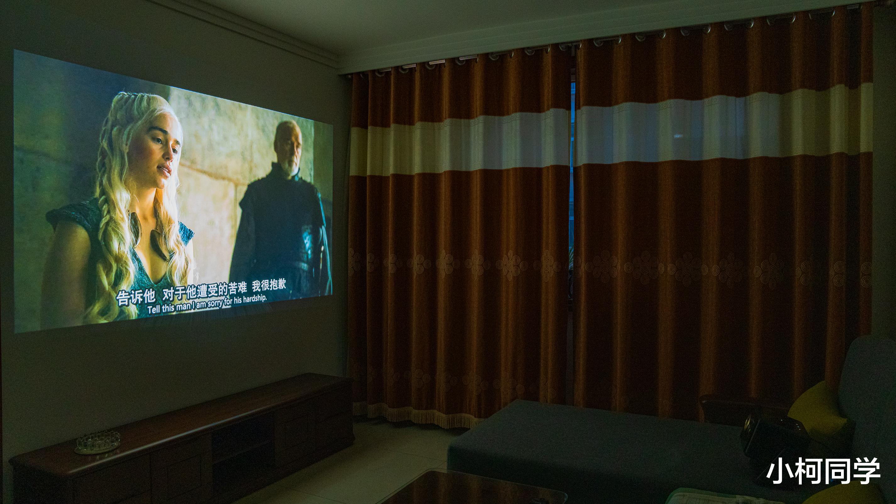 AI-HDR画质引擎,sRGB臻彩高色域,△E≈0.9高色准,画质更出色。下面两张图是我的观看场景及实际投屏显示效果,