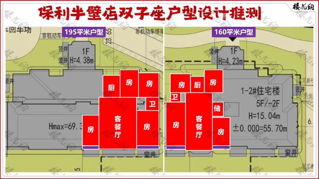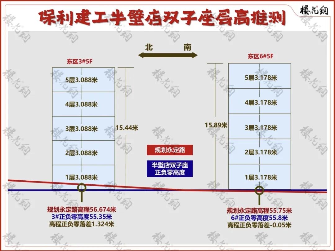 由于地块的建筑高度模糊,没有明确15米,还是18米,李红亮凭借超凡的能力,让半壁店双子突破了15米的航空高度限制,最高点达到17.15米。(详见《保利四环豪宅,神秘的下沉设计》)