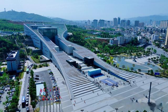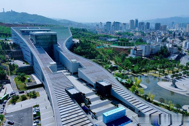 首先,这座博物馆的体量非常大。它一头枕在金凤山上,一脚蹬到了丹江边。它没有刷新城市天际线,却以一种含蓄、优美、充满艺术感的姿态成为商洛这座城市备受瞩目的新地标。