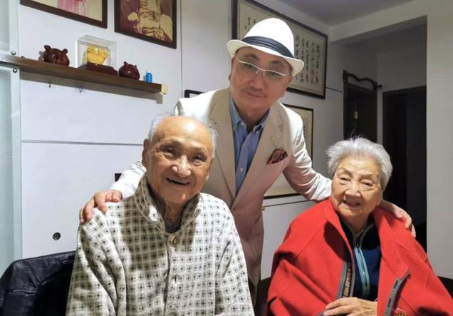 家人给童葆苓拍摄了两张照片,分别是她与女儿女婿,及陈吉夫妇的合照。