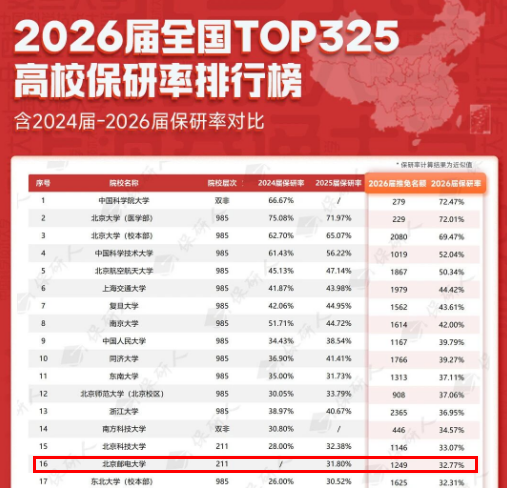 这种“人数降了、难度没减”的现实里,“提前锁定深造资格”的保研,自然成了优秀本科生更稳妥的选择。而在信息科技领域颇具口碑的北京邮电大学,其保研数据与育人故事,恰好能说明这条路的可行性与独特价值。
