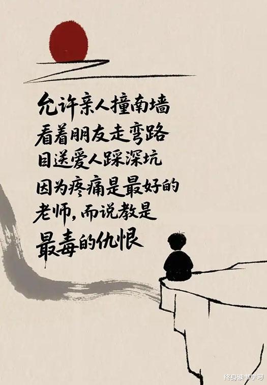 最近看到这样几句话:“要允许至亲之人撞南墙,目送挚爱走弯路,静观知己踩深坑!”一开始觉得这是不负责的话,但仔细想了想,也许这才是对的。