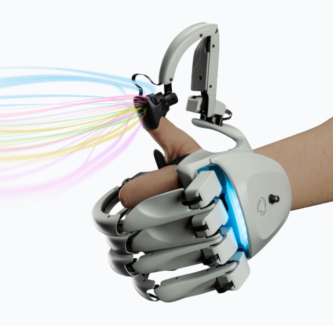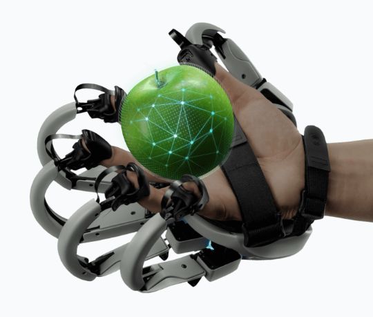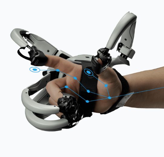 力反馈是XR中触觉评估和交互的关键技术,TESLAGLOVE的外骨骼可在抓握动作中产生阻力并轻轻拉动手指,使手停止在虚拟物体周围。这提供了对形状、大小的感知。