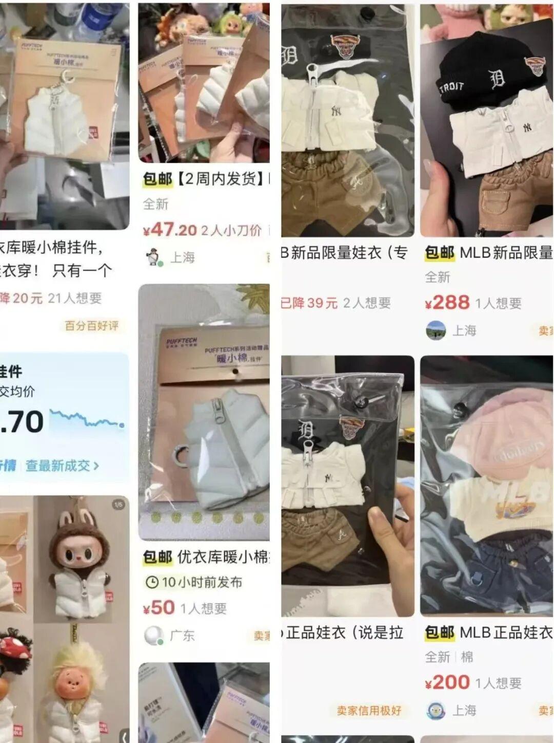 需求催生产业,市场立刻以产业化闪电战回应。Labubu的爆火后,娃衣从小众消费跃升为热门赛道,“娃衣是刚需。”资深娃圈玩家“小喻”在社交媒体展示着她超200套的娃衣,“就像你会给孩子买四季衣服一样,我不想娃只是裸体。而且心情不同、场合不同,娃的‘穿搭’也要换。”