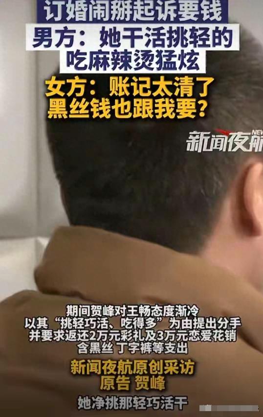 大概是男方觉着自己“亏了”。谈对象这段时间的花销基本都是他掏的,再加上那2万块彩礼,他心里就不平衡了。于是,他把还没结成婚的对象告上了法庭,要求女方把这些钱都还回去。