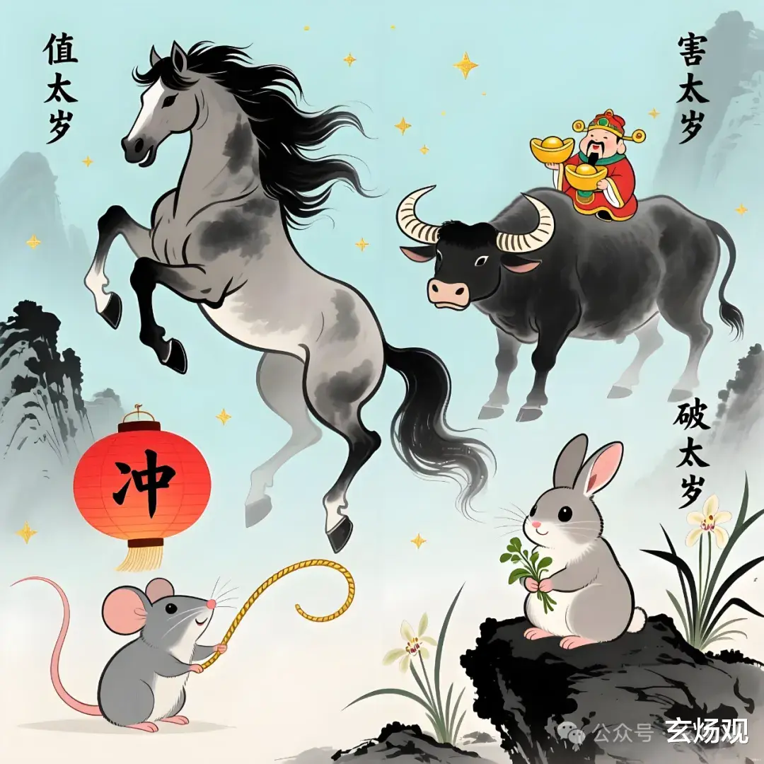 “冲”在传统命理学中,主要指地支之间的方位相对与五行对立。十二地支分为六组相冲,即:子午冲、丑未冲、寅申冲、卯酉冲、辰戌冲、巳亥冲。其中,子水与午火形成水火相激之势,代表对立、变动与挑战。属鼠人对应的地支为“子”,2026太岁为“午”,因此形成“冲太岁”之局。
