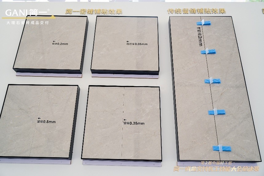 值得注意的是,作为国际领先的技术,简一密缝铺贴不仅对产品品质有严格要求,同时遵循严谨的铺贴流程并具备扎实的功底。参赛的金牌瓦工们通过展现他们扎实的技能和良好的职业素养,让人们看到了他们在追求技术进步和创新方面所付出的努力和取得的显著成果。