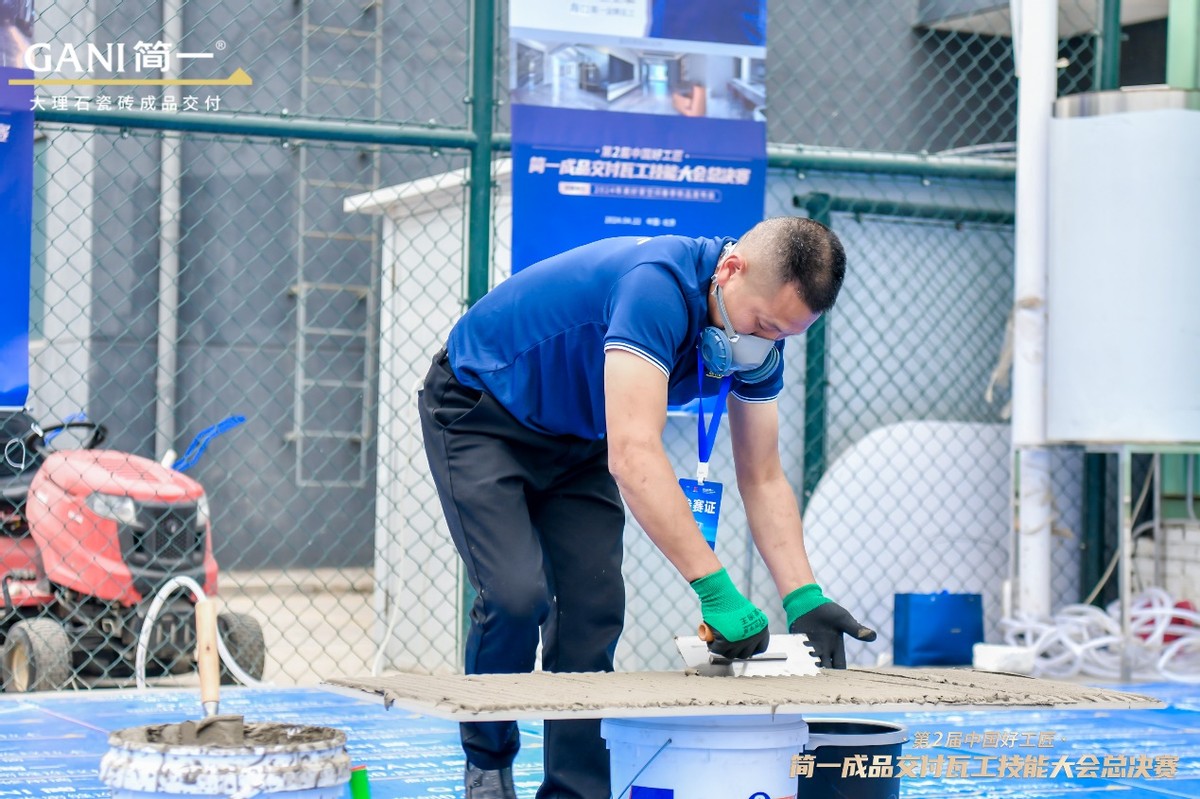 “中国好工匠·简一成品交付瓦工技能大会”现场瓦工比赛