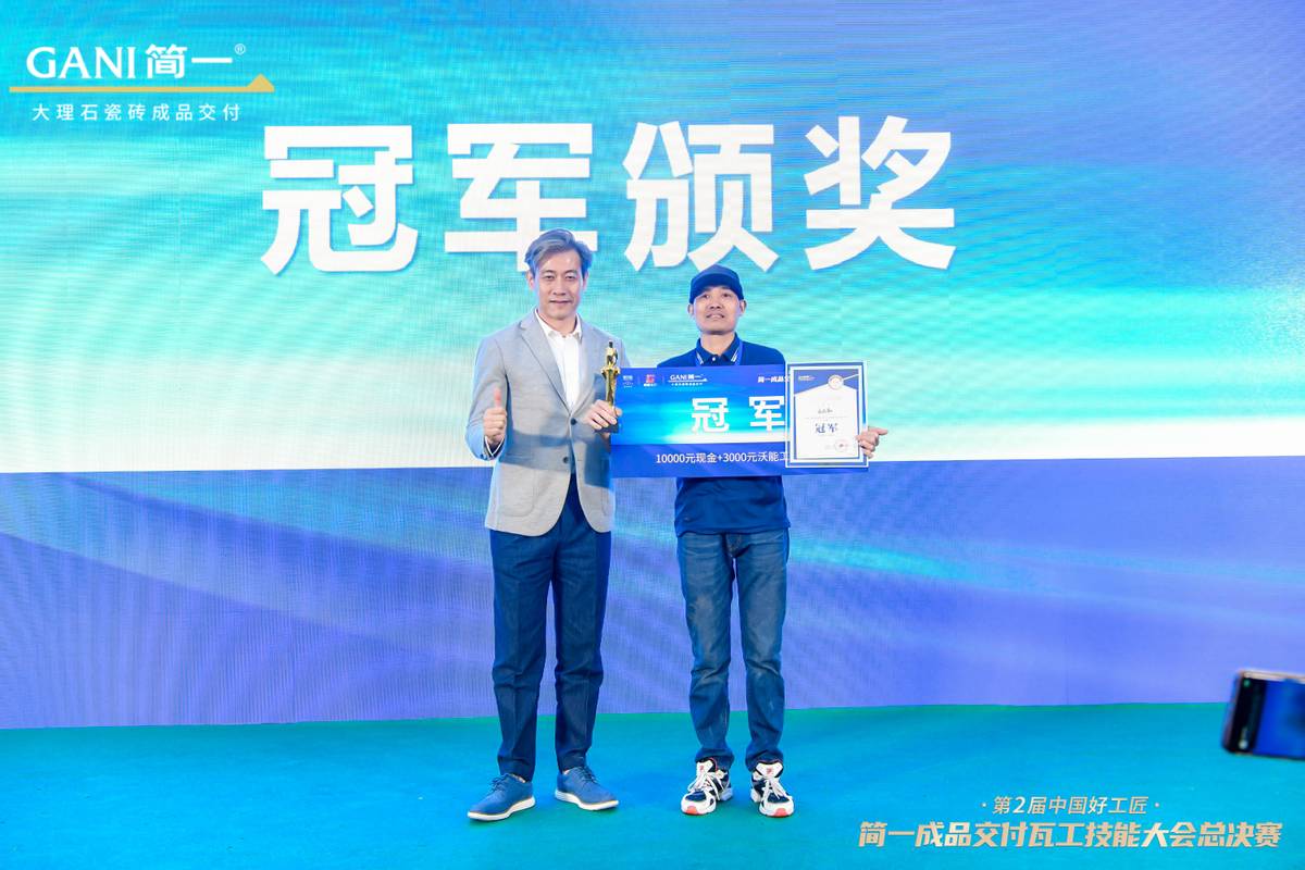 经过两个小时的激烈角逐,各位选手都展现出了极高的技艺水平。最终,来自上海的简一金牌瓦工师傅赵花满凭借出色的技艺和稳定的发挥,成功夺得本次大赛冠军。重庆简一金牌瓦工师傅刘光均荣获亚军、海口简一金牌瓦工师傅董玉来获得季军。同时,来自海口的董玉来也凭借2023票的超高人气获得最佳人气奖!