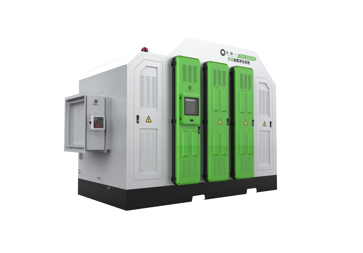 1. 高效回收:核心工艺提效,减少资源浪费低成本回收的基础是“高回收率+高纯度油分”。天得一构建分级回收体系,前置机械过滤分级拦截大颗粒油滴与粉尘,初效金属网拦截≥10μm粒子,中效疏油过滤介质捕捉5-10μm粒子,去除率达95%以上;核心板式电场静电吸附模块,通过高频高压电场使0.1-5μm超细油雾带电,平行板式电极均匀吸附,整体回收率稳定在90%以上,远超行业70%-80%的平均水平。