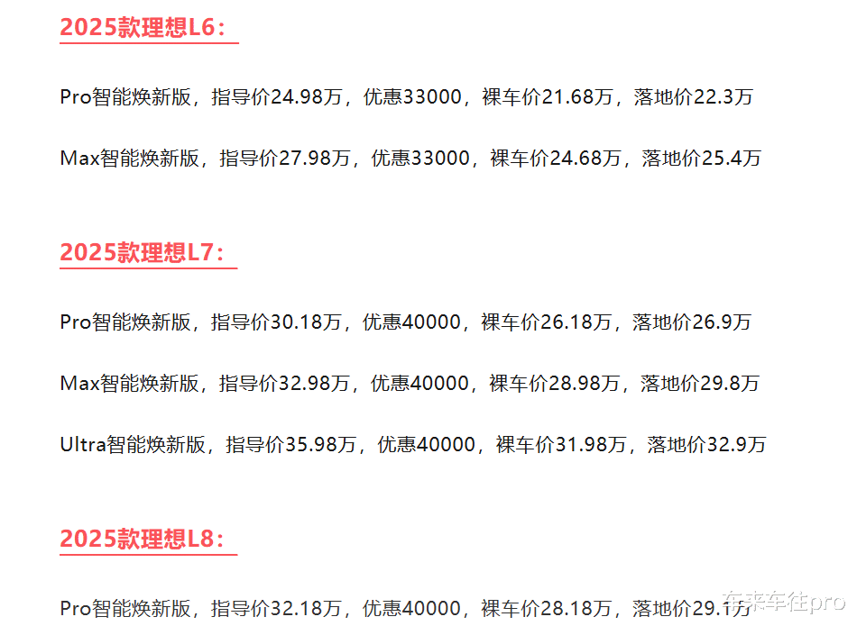 不过,也不能忽视理想在智能驾驶和空间舒适性上的优势。其L系列依然在中高端家庭市场有着极强吸引力。尤其是经过大幅优惠后,L8、L9的性价比直逼极氪001和问界M9,或许能短期内提振销量。