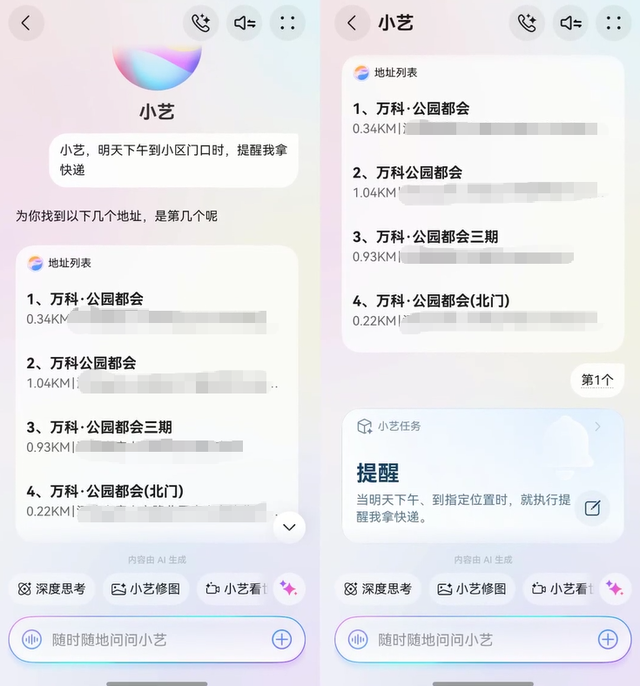以前我总是陷入“记性不好”的尴尬:比如想好了回家要取快递,结果一进门,才知道又忘了;计划好要把车开去充电,结果一忙工作又抛诸脑后。而现在,小艺任务能协助我。只要告诉TA:“小艺,明天下午到小区门口时,提醒我拿快递”或者“每周五下班时,提醒我去给车充电。”只要满足预设条件,小艺就会主动提醒我。把脑容量留给快乐,把琐事放心交给TA。