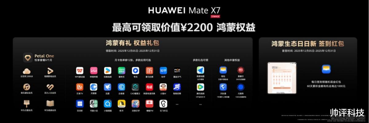 入了华为Mate X7的朋友,都快去领取这份超值的“年终福利”!从桌面右滑到负一屏,点击“鸿蒙有礼”即可参与,注意12月31日前要完成领取!