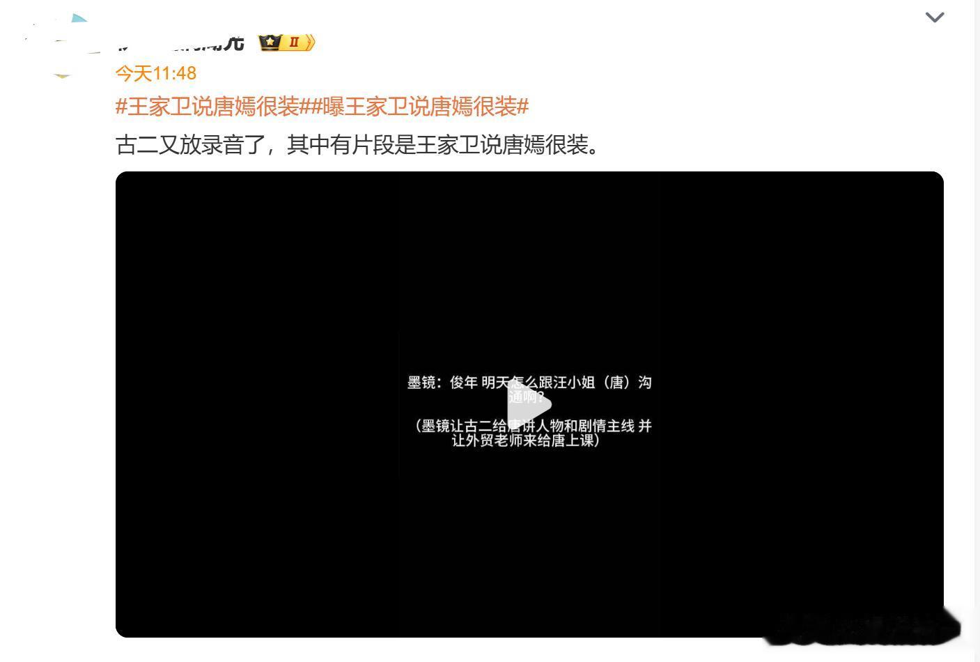 但王家卫的录音一爆出来,有人对唐嫣的印象开始有了变化,一部分黑粉觉得自己对唐嫣一直以来的判断得到了佐证,恨不得普天同庆,也有一部分猜测,在娱乐圈被大导演说“装”,说不定有另外一层深意,苗苗就是个例子。