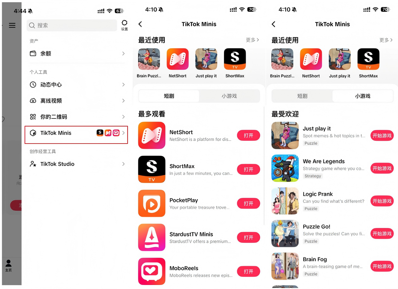 TikTok Minis的出现,等于给这条路径提供了一个“站内版本”: