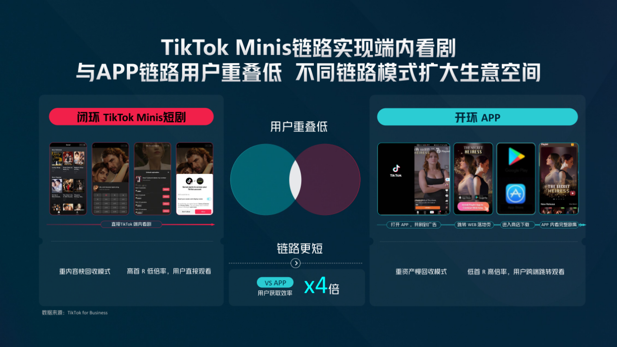 总体来看,TikTok Minis的落地,是在原有短剧出海路径之上,新增了一条“站内闭环”的赛道。