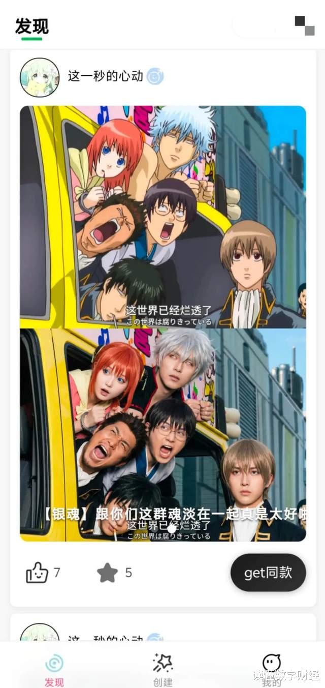 作品右下方有“get同款”,点击后会跳转至二创工坊,也可以从下方的“创建”进入二创工坊,用户首先要上传动漫/游戏角色原图,支持JPG/PNG格式。