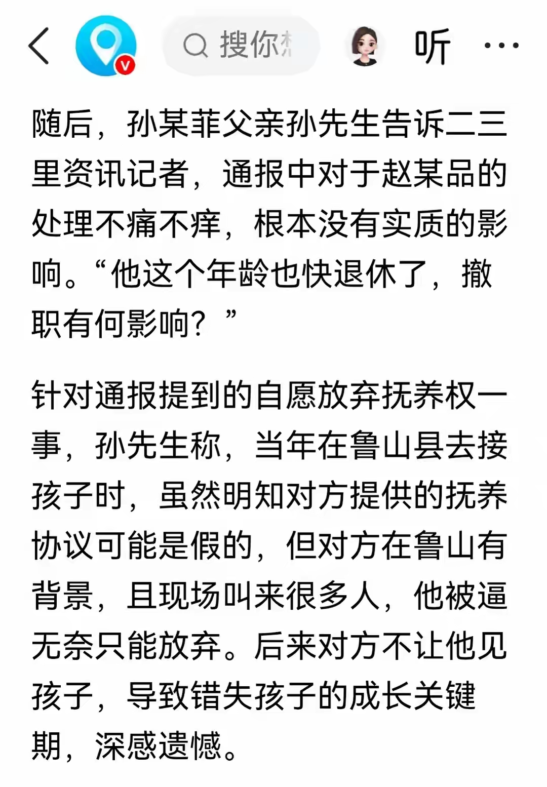 她父亲孙某新在事后接受采访时,直接把这话说出来了:“通报中对赵某品的处理不痛不痒,根本没有实质性影响,他这个年龄也快退休了,撤不撤职有何影响?”
