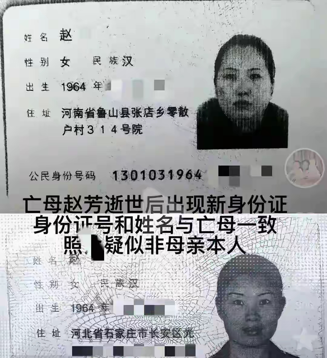 也就是说,母亲去世一个多月后,她的身份被冒用,和自己的亲哥哥“结了婚”。