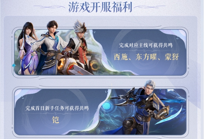 只要完成主线,就可以获得共鸣西施、东方曜、蒙犽三个英雄,需要注意的是,这个游戏的支线可以跳过,但是主线不能跳过,完成首日的新手任务就可以获得共鸣铠,参与英雄路体验各个故事的故事和任务就可以获得对应英雄共鸣的初始形象。看完这些真是梦回当年手游王者开服啊。