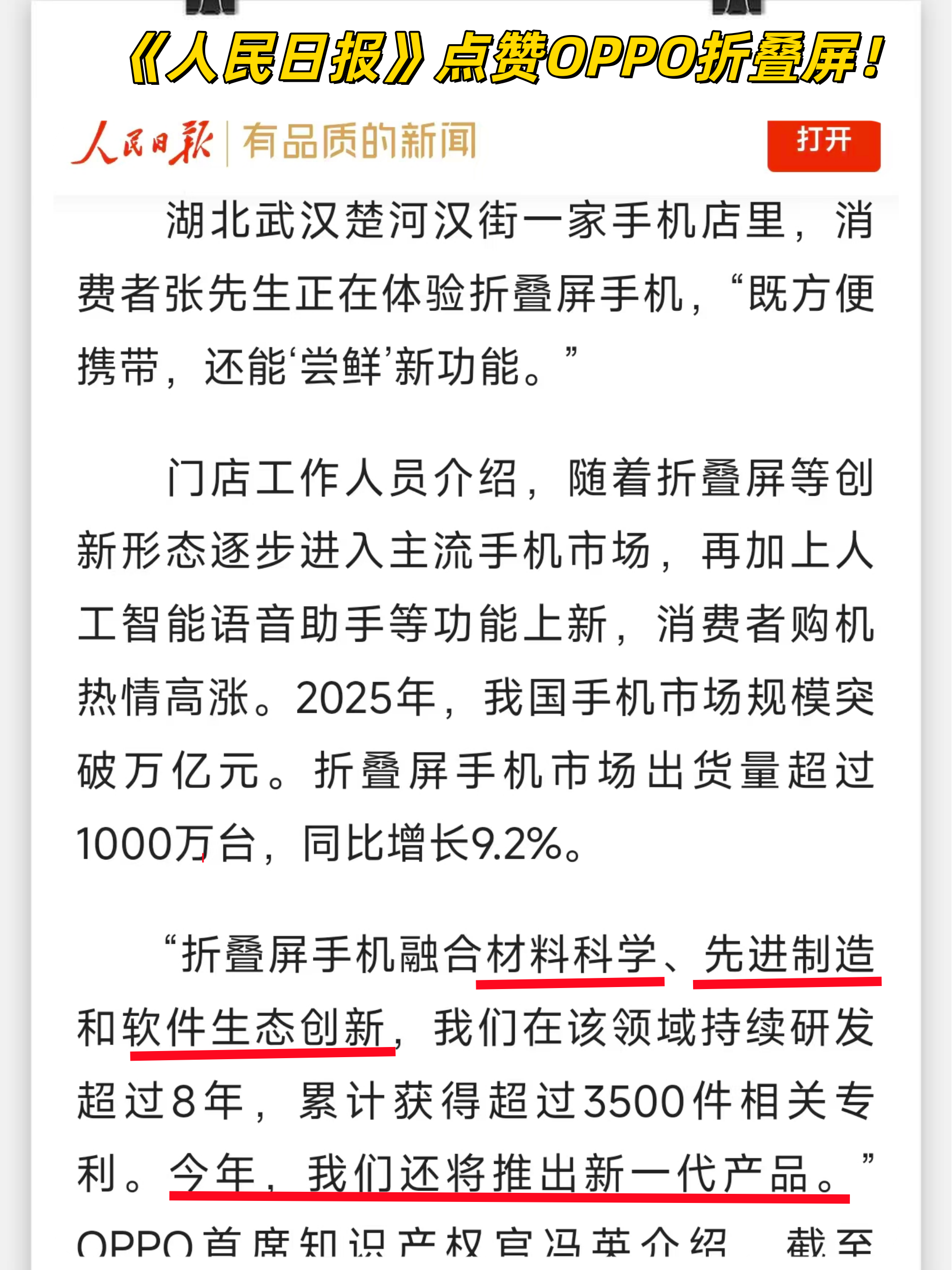 别的不说,能上《人民日报》头版专题报道,OPPO这回是真长脸了!