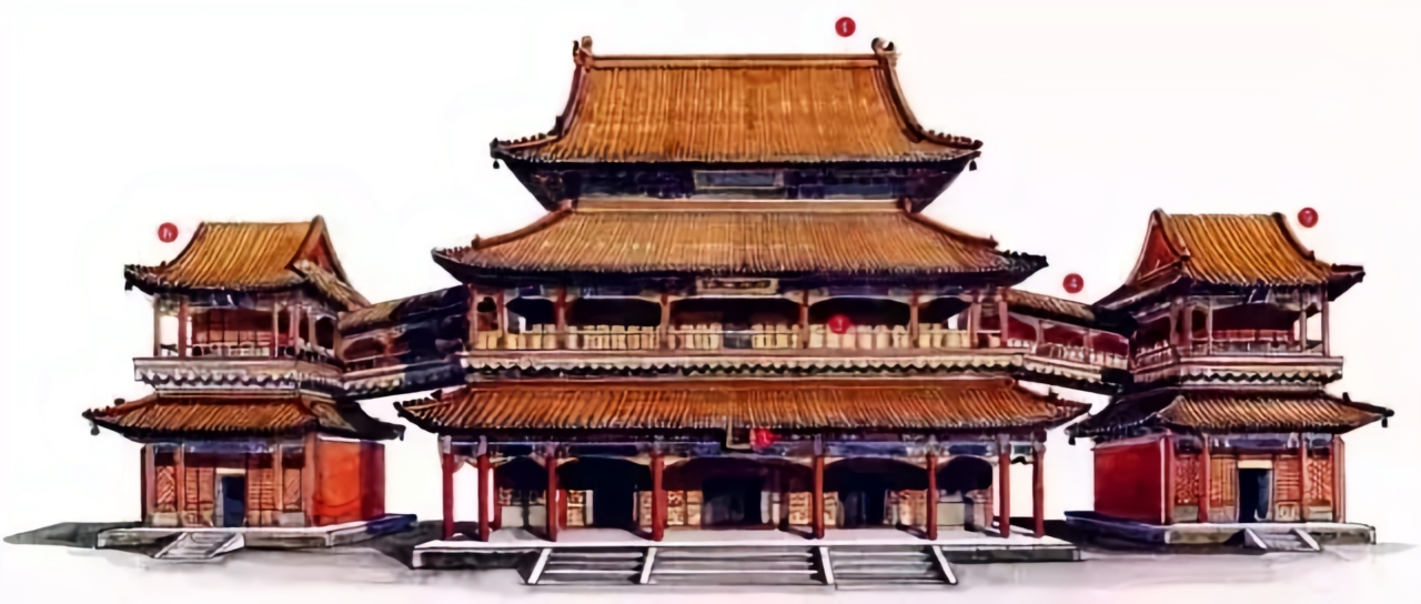 中国古代“礼治”思想深入建筑,形成一套严格的等级规范,从屋顶形制、开间数量到装饰细节,都有明确规定。