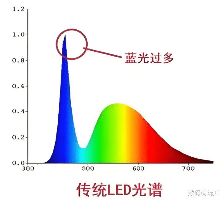 这三款产品的光谱表现存在明显短板。爱德华医生天使之光2的情况较为特殊,它虽然具备红光增益,能在一定程度上缓解眼睛疲劳,但蓝光峰值高达1.0,未做有效压制,整体光谱均衡性一般。而明基MindDuo2(1.0)与飞利浦轩泰(1.0)不仅蓝光峰值处于较高水平,且缺乏红光增益,长期使用容易加重视网膜负担,视觉疲劳的风险也更高。