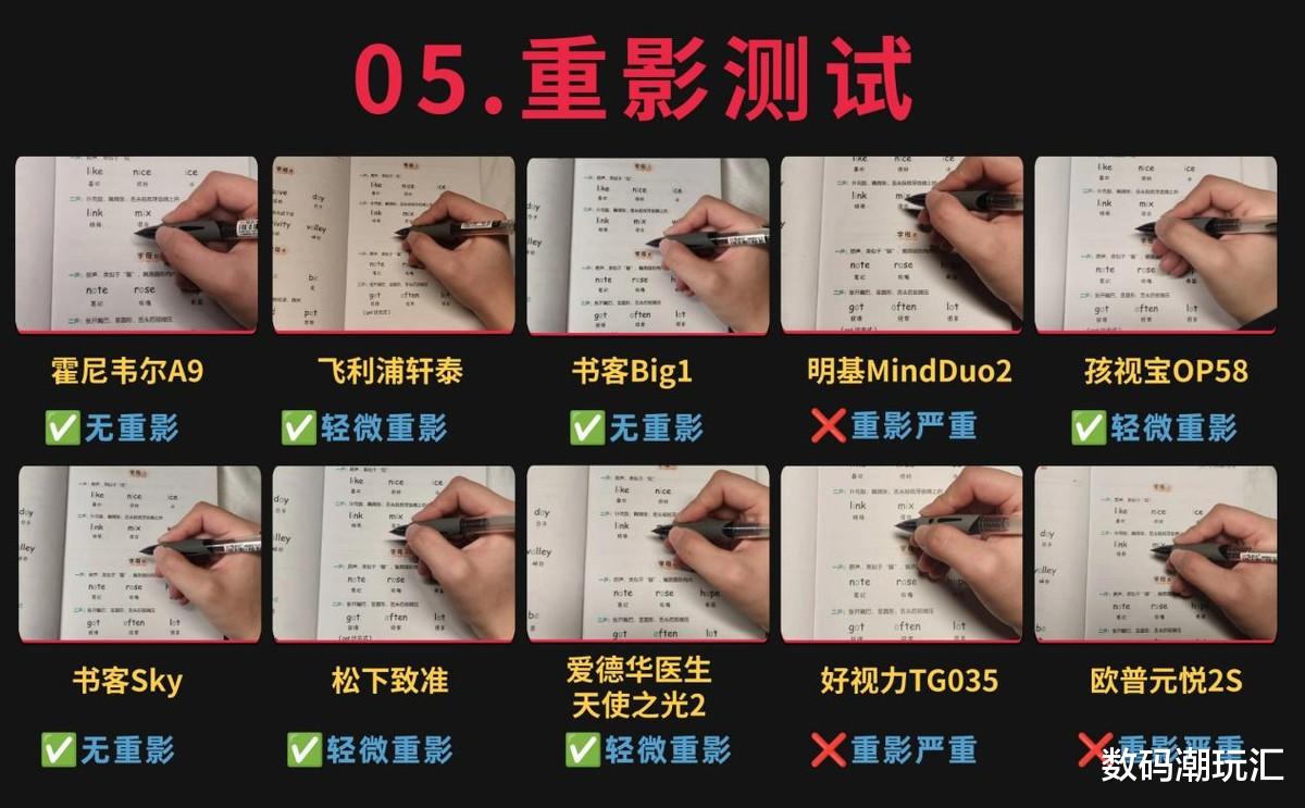 ★★★★★重影控制优秀:书客Big1、霍尼韦尔A9、书客Sky