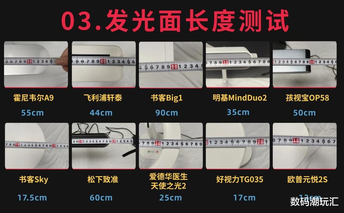 测试方法:使用卷尺测量每款台灯发光面板最长边的实际物理长度。同时,在暗房中开启台灯,观察光线在标准书桌上的实际覆盖范围,评估其光线是否能均匀覆盖主要作业区域,避免出现“阴阳桌面”的情况。