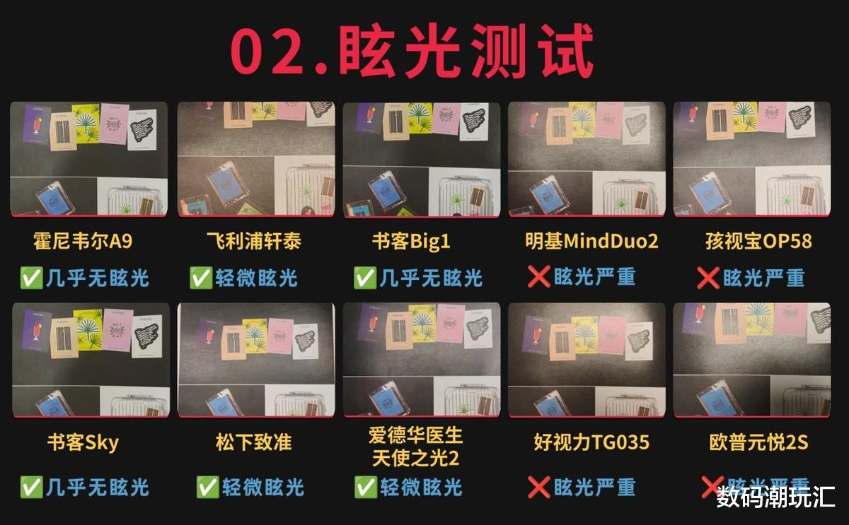 在眩光测试中,表现最为出色的是书客Big1、霍尼韦尔A9和书客Sky,它们均实现了几乎无眩光的优异表现。