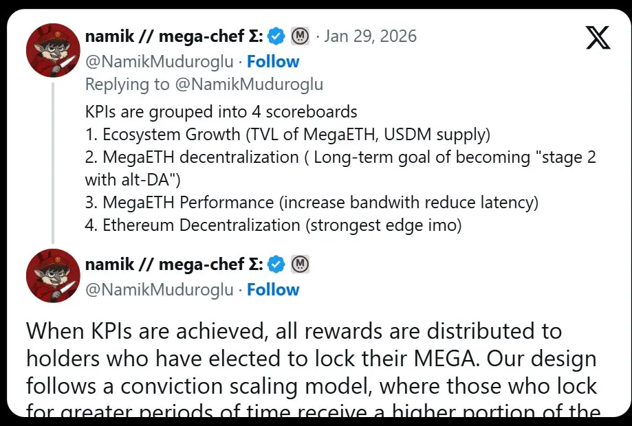谁获得新供应量很重要这个 KPI 计划中另一个有趣的因素是,当 KPI 达成时,哪些投资者会获得 MEGA。根据 Namik 的推文,获得 MEGA 解锁的人是那些将 MEGA 质押到锁定合约中的人。
