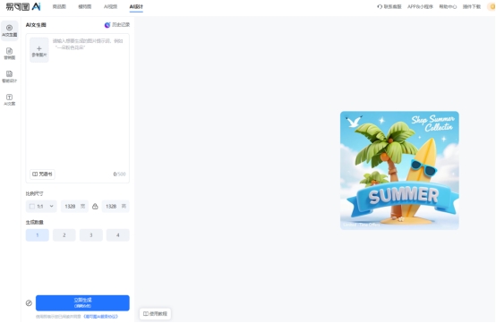 从使用体验来看,易可图的AI文生图功能整体操作比较简单,即使没有设计经验的用户也可以轻松上手。