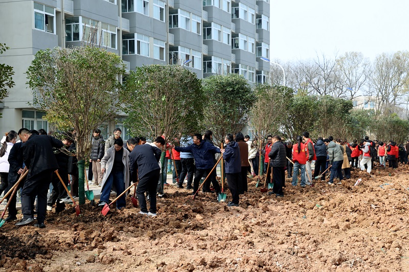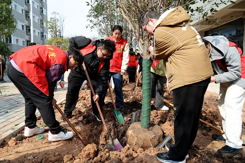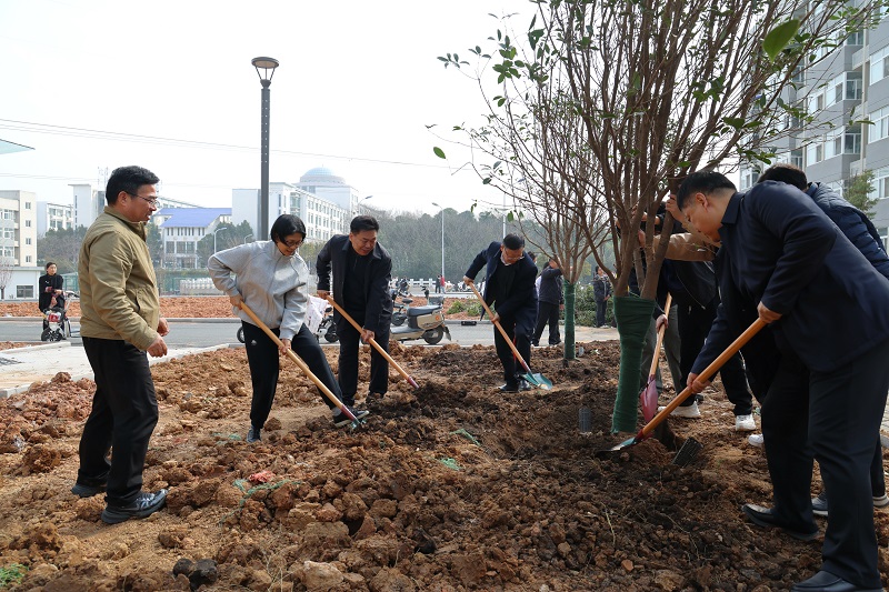 3月13日,信阳农林学院在校园内开展集中植树活动。校党委书记黄松与全体校领导、各相关部门负责人及师生代表齐聚新建29号公寓楼南侧绿化区域,共同参与植树劳动,以实际行动践行生态文明理念,厚植劳动育人情怀,为美丽校园再添新绿、再赋生机。