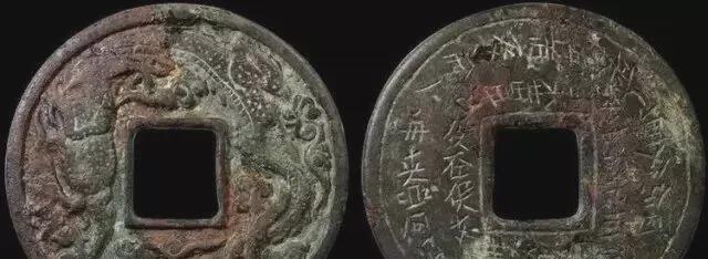 辽代云龙纹大型花钱,背面阴刻契丹文,直径80mm,极罕见,极美品。