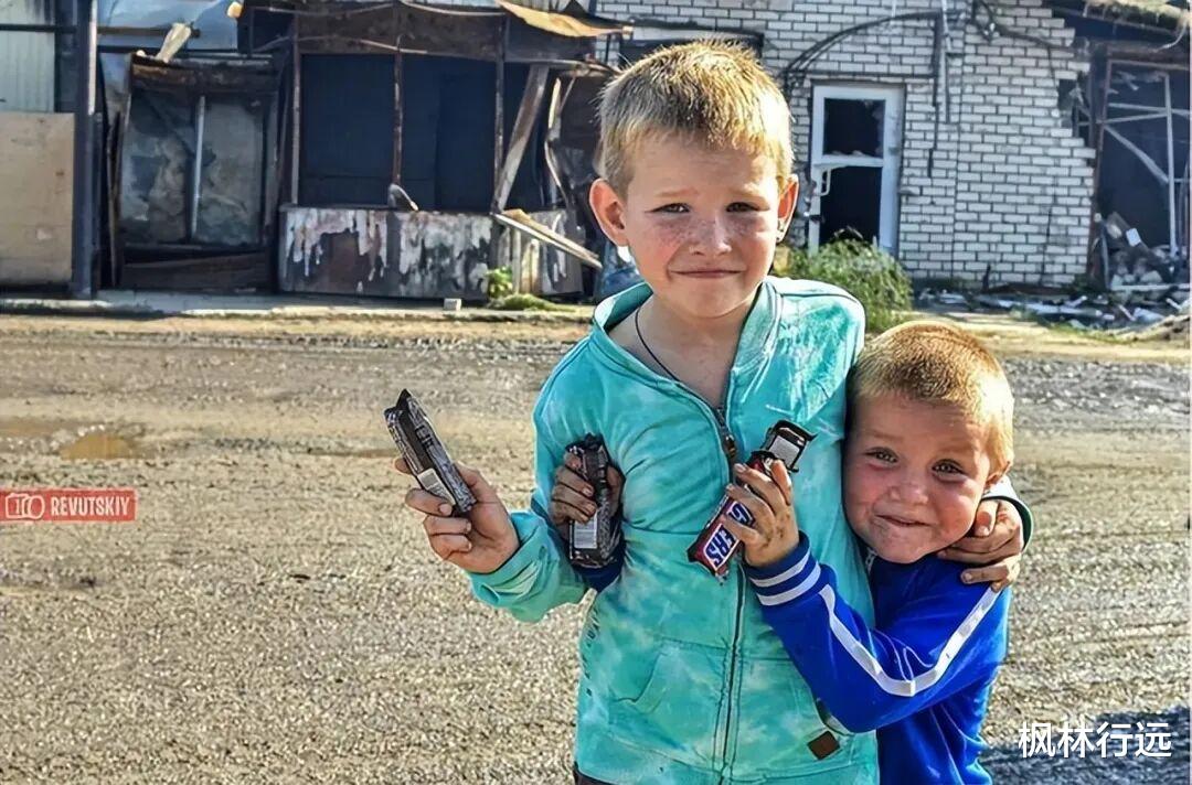 最后上一张老照片,2022年拍摄于伊久姆一个刚刚被解放的小镇——那里同样发生过布查那样的惨剧——主人公是两个小男孩。