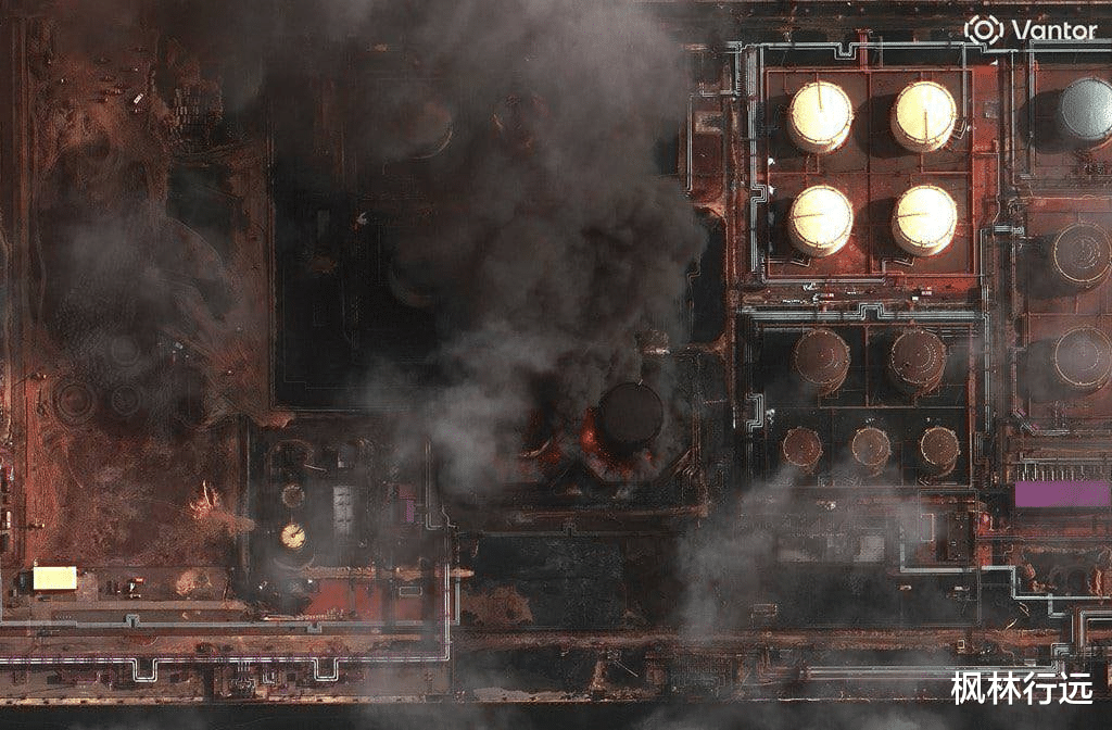 卫星图像显示,乌斯季卢加港口内油罐火势很猛。