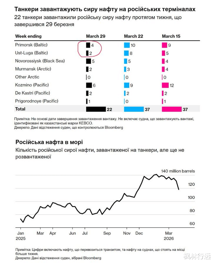 彭博社称,尽管全球油价不断上涨,但俄罗斯收入损失估计每周仍超过 10 亿美元。