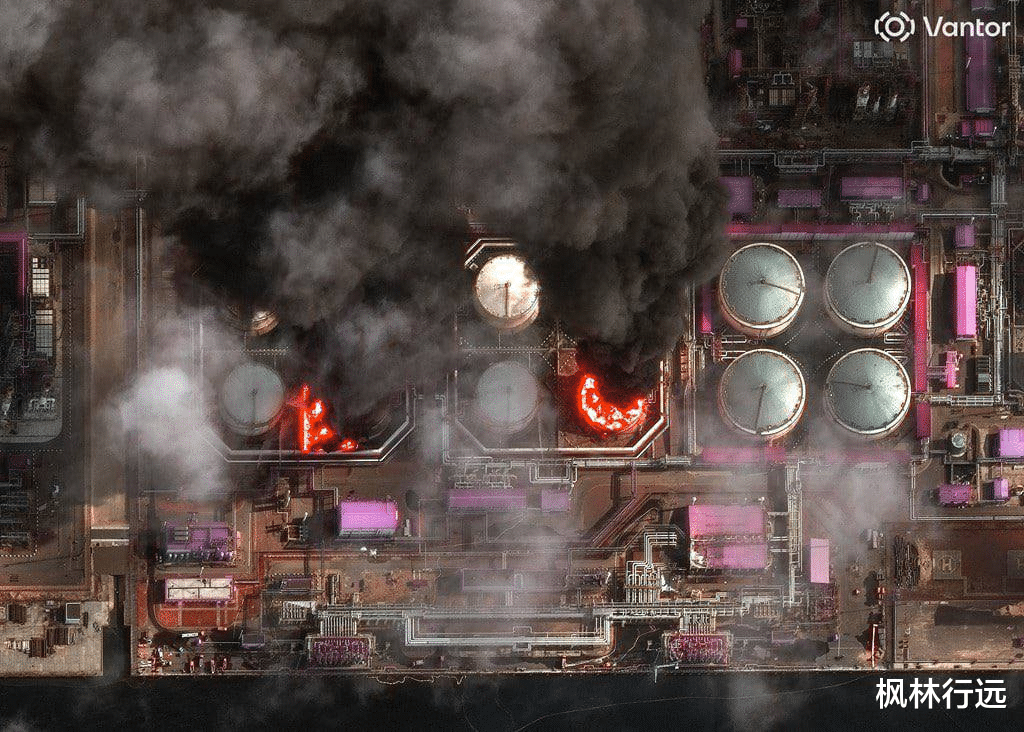 现场画面显示,袭击引发剧烈爆炸,随后燃起五级大火,浓烟滚滚。消防部门正全力扑救,当地机场一度暂停运营,并对空气质量进行严密监测。