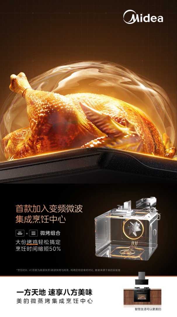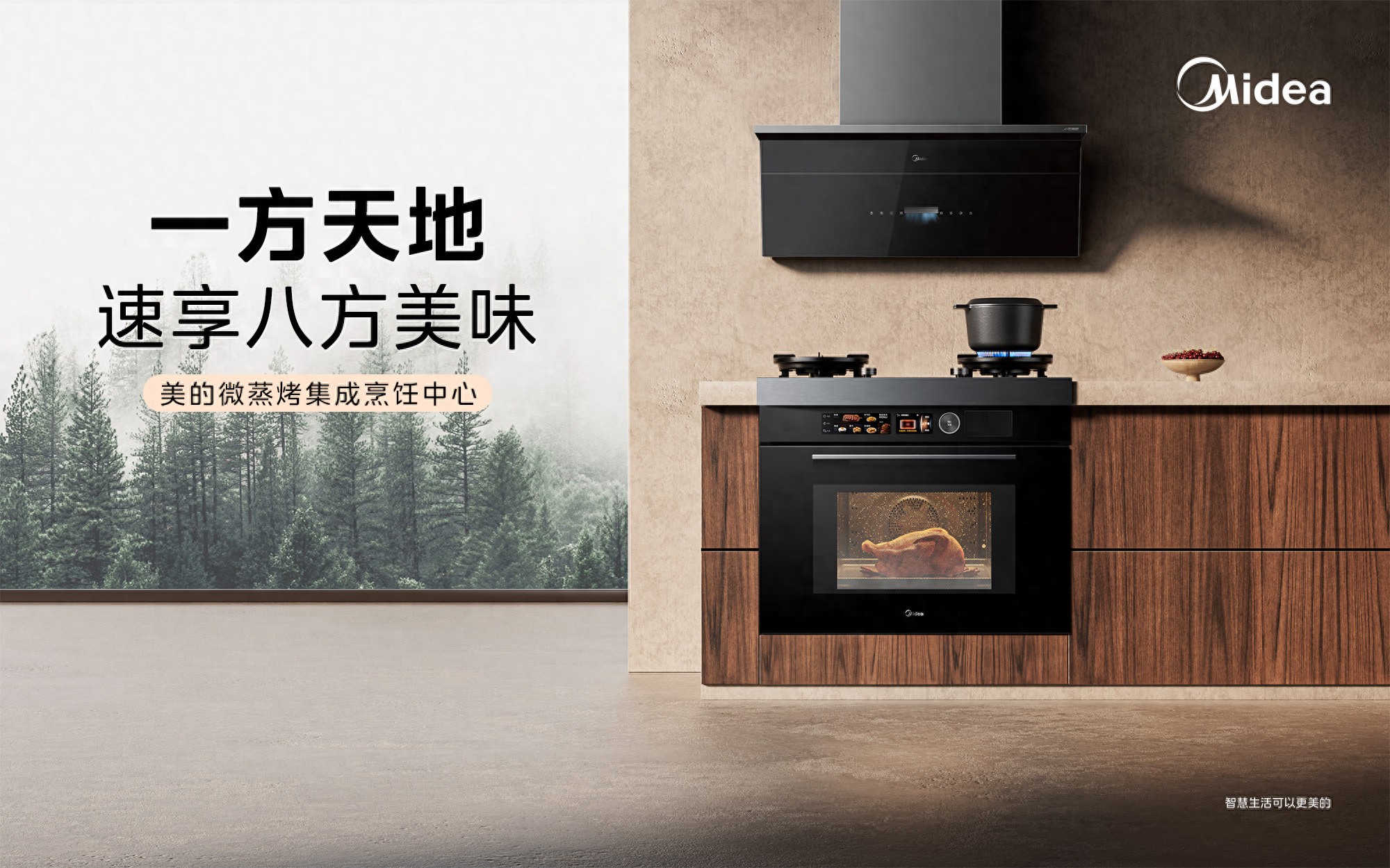 在厨居一体化趋势和多样化饮食需求下,美的创新推出微蒸烤集成烹饪中心,其集成化创新设计,不仅提升了厨居美感和空间利用率,更搭载多项前沿创新科技,为用户带来高效烹饪体验和高品质生活。