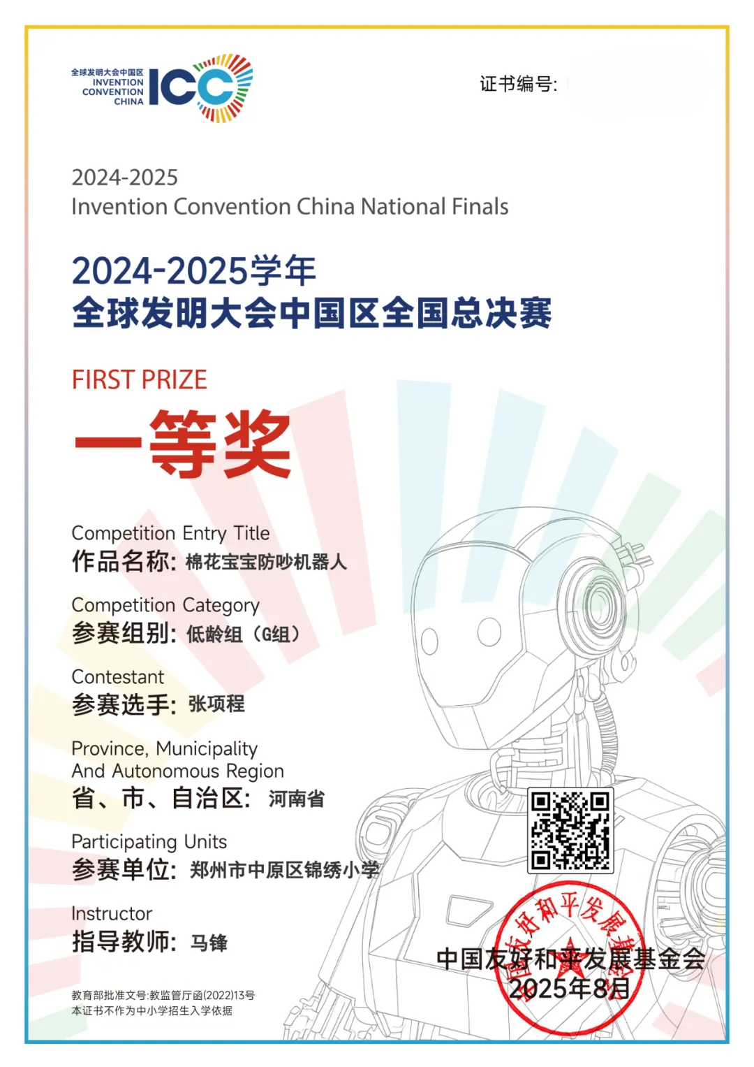 特别值得一提的是,最小年龄组的张项程同学凭借独具匠心的创意与沉着自信的展示,一举夺得“国家级一等奖”,展现出令人瞩目的创新潜力。